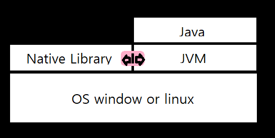 그러한 Native Library를 실행 시키기 위해서는 JNI를 통하여 JVM에서 실행시킵니다.
